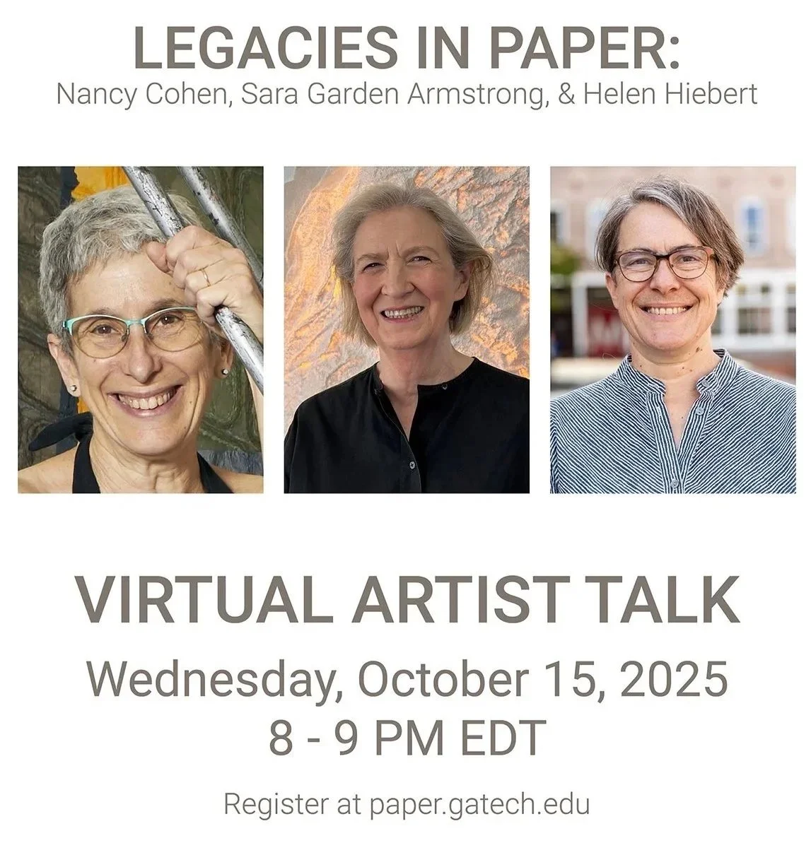 Please join Helen, Nancy and myself for a conversation with exhibition curator, Jerushia Graham. Each will discuss our relationship with the medium of handmade paper, our working methodology, our collaborations and current explorations.